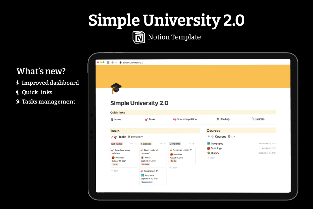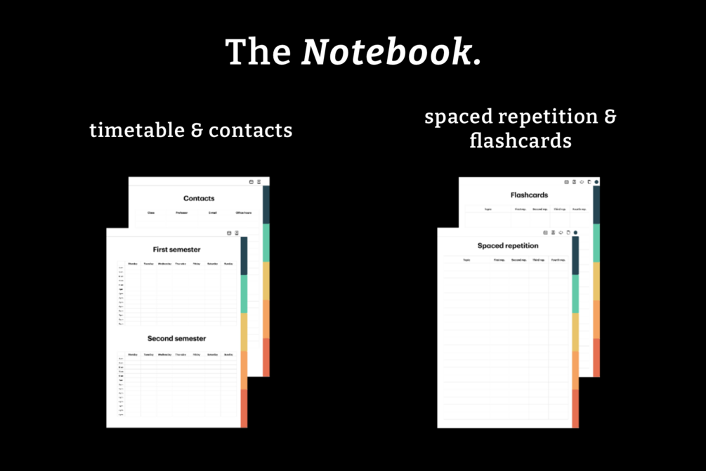 You want to go digital this school year and you don't know where to begin? This is the bundle for you! Here you have The Notebook, with squared, lined and dotted paper, a in 10 different colors for your subjects, 8 for you digital notebook. Plus you get a new , Simple University 2.0, with a task management, a spaced repetition template and a lesson calendar.